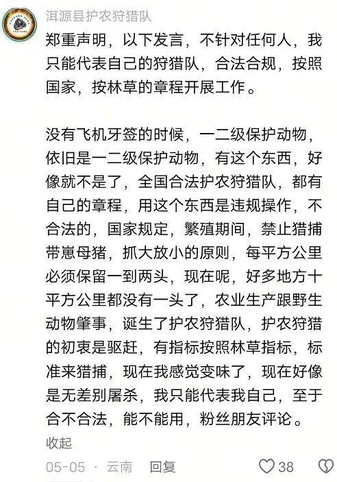 这里南风窗记者提供的信息价值,不仅在于无人机坠箭的危险性,也在于让我们注意到,在这场流量狂欢里,"很多人逐渐忘记了捕猎野猪的真正目的",打野猪的活动被娱乐化,很容易引起传播效仿。