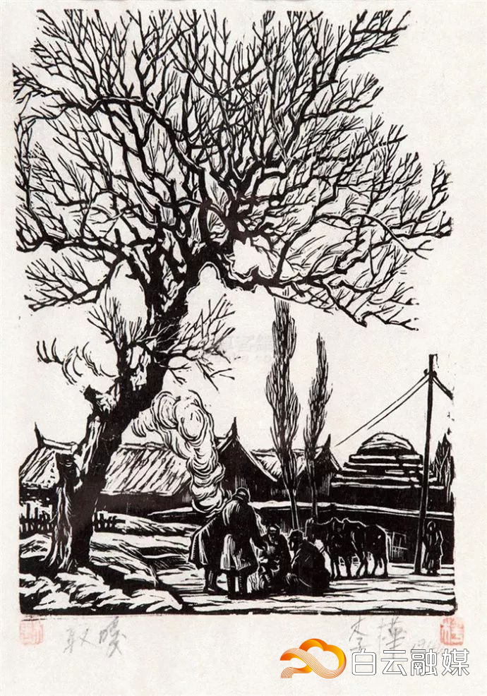 李桦木刻作品《取暖》。