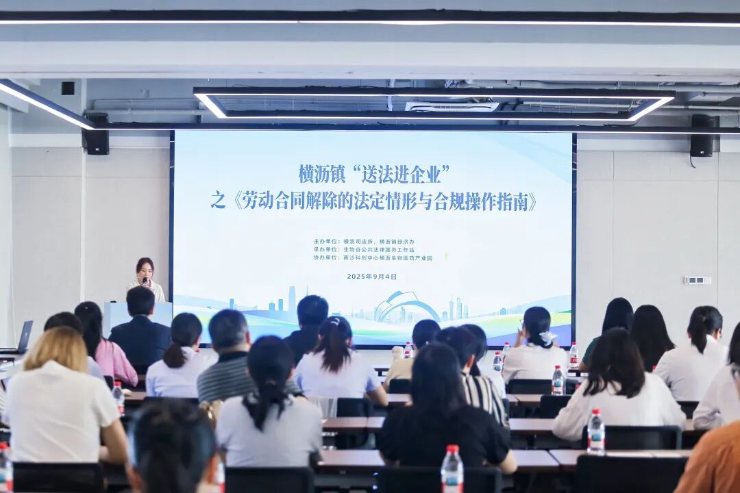 9月4日升利配,横沥镇举办劳动合同解除的法定情形与合规操作指南普法讲座,吸引了辖内近30家企业的人力资源主管参加。本次活动由横沥镇经济发展办公室、横沥司法所、南沙科创中心横沥生物医药产业园联合举办。
