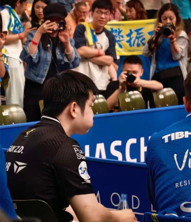 这场比赛,球馆早早座无虚席,有人还买的站票,很多人就是为了能见到樊振东,原本客场比赛,生生被变成樊振东的主场,比赛结束后,全场球迷齐声高喊“樊振东”,气氛相当热烈,樊振东也是没有想到会有这么多球迷支持他,他边走边看,和球迷一起鼓掌祝贺,不时还竖起大拇指点赞。