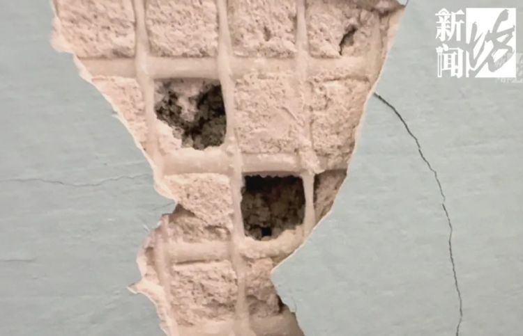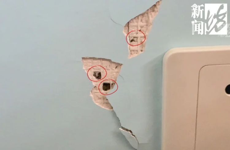原来,陈女士口中所说的这堵墙,正是两户人家的共用隔墙,5月29日装修工人在对403室进行墙体开槽作业时,手滑打穿了墙体,导致404室陈女士家卧室墙皮脱落,留下了3个洞。