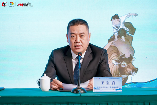 王宝启副市长详细介绍了汾阳酒产业发展成果。他指出,九年来,汾阳以酒为媒、以会聚力,将一场展会打造成为城市产业升级、经济增长的强大引擎。汾阳酒博会不仅是一张熠熠生辉的城市名片,更成为拉动区域经济高质量发展的强劲引擎。2024年汾阳市GDP达376.27亿元,白酒制造业增加值212.66亿元,位列全省第一,一瓶酒,正在激活一座城。他介绍说,汾阳是中国白酒的“祖庭产区”,杏花村遗址见证了中华酒文明的源远流长,是“世界十大烈酒产区”,也是全国最大的清香型白酒生产基地,并进一步指出,汾阳已形成“以汾酒为龙头,汾阳王、汾杏等本土品牌为骨干,众多新锐企业共同发展”的“一汾三金六星”产业集群格局,正全力打造千亿级白酒全产业链生态圈。在致辞最后,他以“清香核心,祖庭产区”“产城融合,酒都样板”“诗意秋光,共赢舞台”概括了汾阳发展情况,并诚邀全球朋友回到清香祖庭,相聚酒都汾阳。